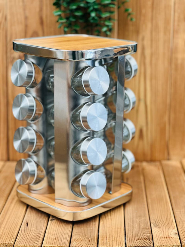 جا ادویه چرخشی ۴ گوش سایز بزرگ ۱۶ تایی استیل